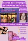 La sophrologie permet d'affiner l'état de conscience, de vaincre la peur et d'optimiser ses possibilités en puisant les ressources en soi. Cette séance sera une séance détente, sans suivi, pour prendre conscience de sa capacité à se relâcher et pouvoir le faire au quotidien.