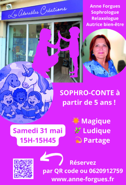 Je vous propose de découvrir le sophro-conte que j'ai écrit moi-même Au cours de cette histoire, parents et enfants seront mis à contribution par des exercices de respiration ou de relâchement musculaire afin de faire avancer le héros au fil de mon récit. Venez vivre ce conte en étant acteur de l'Aventure aux nombreux rebondissements !